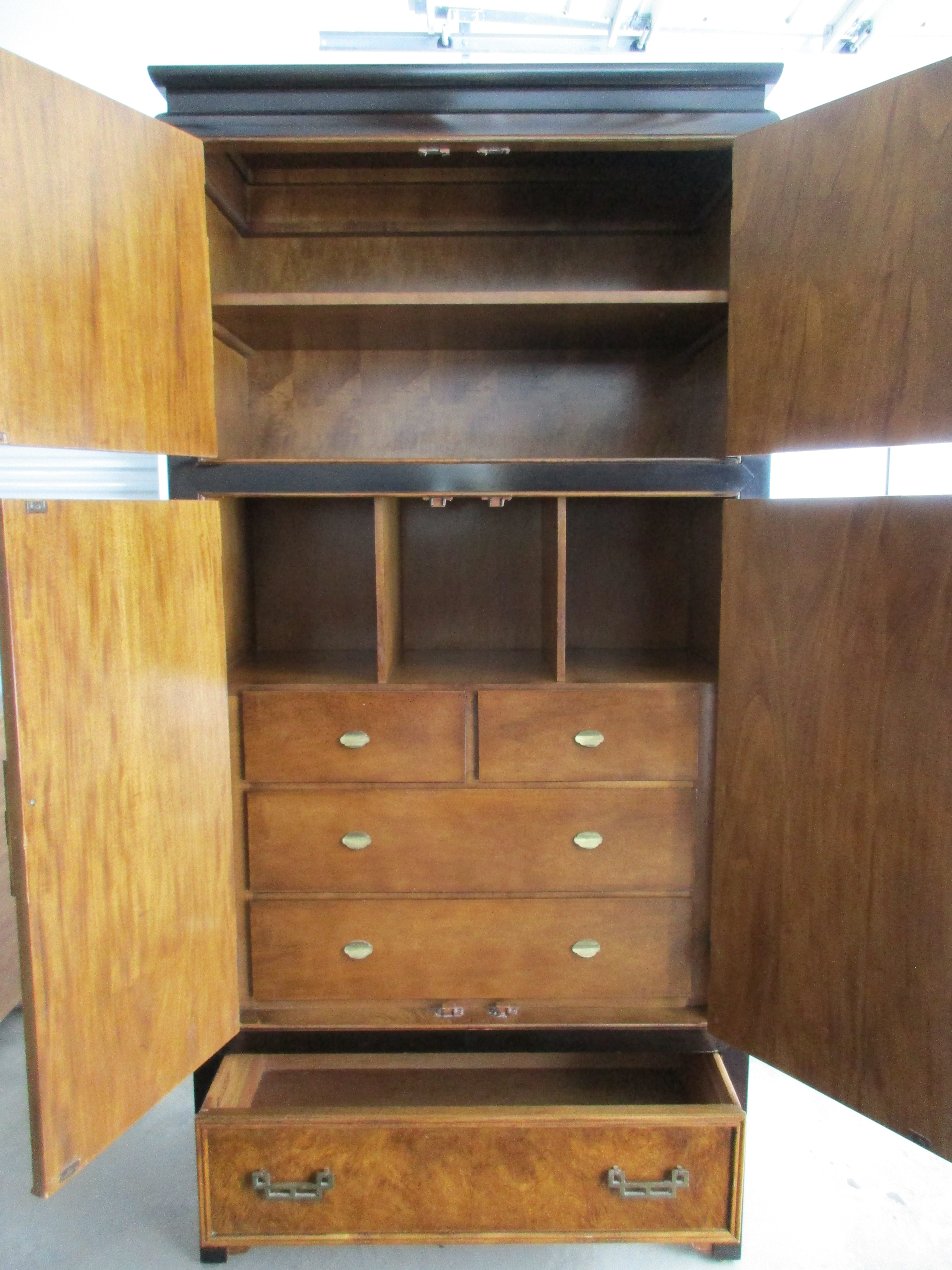 Century furniture armoire. From contemporary to traditional century offers just the right look for any style and occasion. The dresser has beautiful burl wood encased in black lacquered trim. The century brand captures your personal style with quality craftsmanship and architectural interest.