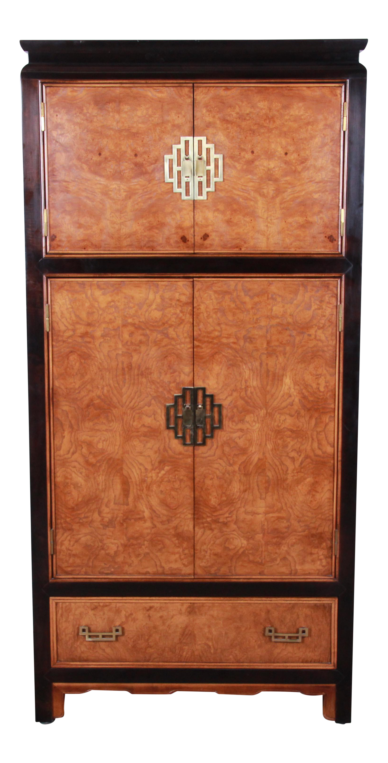 Century Furniture Black Lacquer And Burl Wood Chinoiserie Armoire Dresser