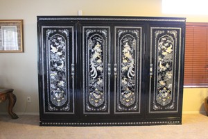 Details About Black Lacquer Inlaid Mother Of Pearl South Korean Armoire Orig Custom Vintage