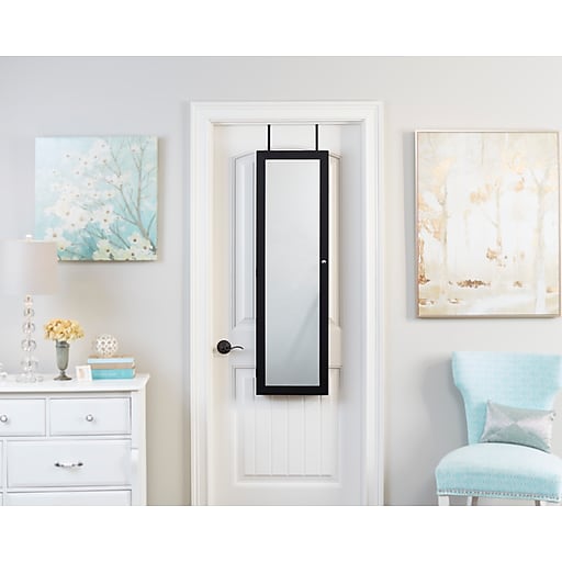 Shop Black Over The Door Mirrored Jewelry Armoire On Sale
