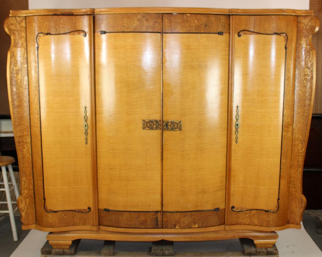 Art Deco 4 Door Armoire In Birds Eye Maple