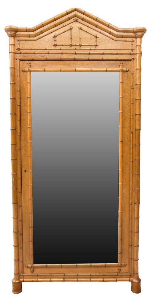 French Birdseye Maple Faux Bamboo Armoire