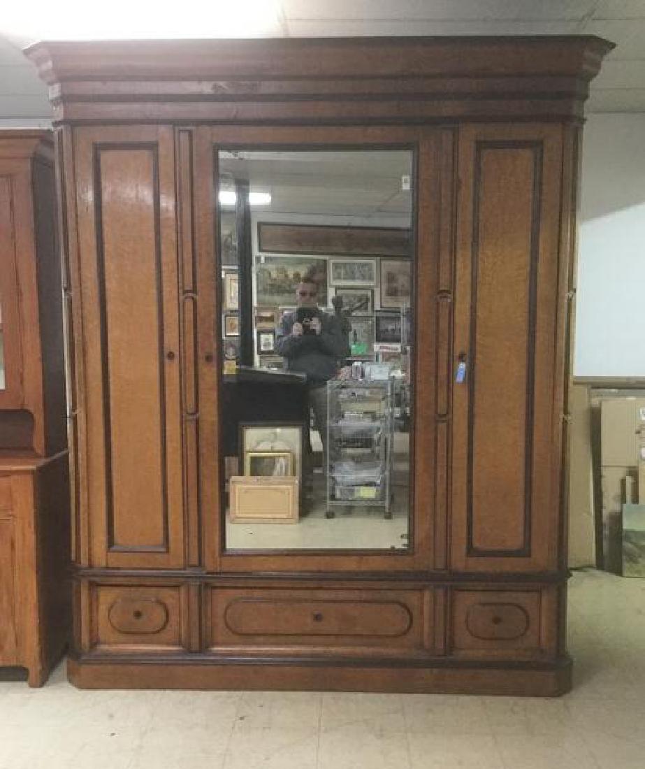 Monumental Victorian Birdseye Maple Armoire Mirror