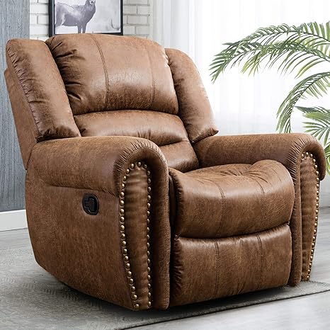 Canmov Leather Recliner Chair Manual Single Seat Recliner Living Room Chair Brown 008