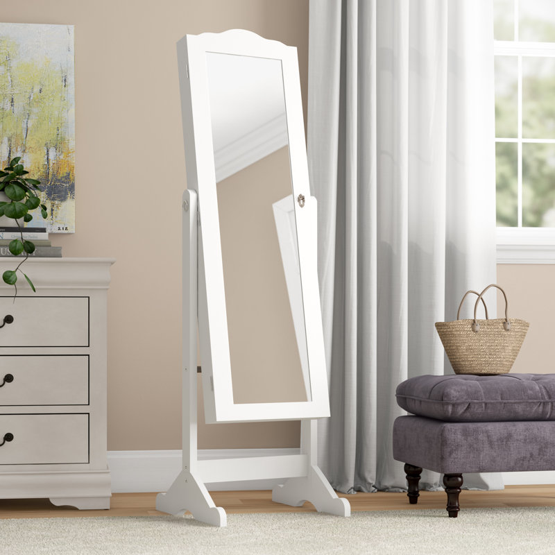 Elin Lockable Free Standing Jewelry Armoire With Mirror